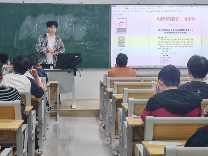 由于2025年普通专升本考试在即,为严肃考风考纪、营造公平公正的考试环境,4月13日,bbin连环夺宝官网各班级在揽胜楼教室开展了“端正考风 严肃考纪”主题班会。班会由班主任和班长共同组织。