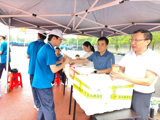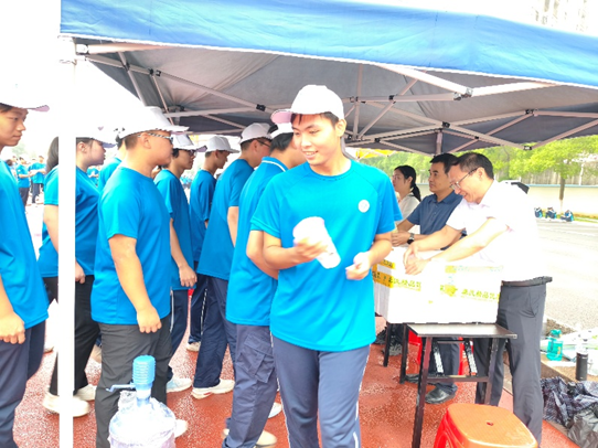 随后,领导老师们亲手将一杯杯冰爽甘甜的柠檬水递到每位新生手中。金黄的柠檬片在透明的杯中上下浮动,散发着清新的香气,给燥热的身体注入丝丝清凉。同学们接过柠檬水,脸上洋溢着惊喜与感激的笑容,纷纷向领导、老师们表达感谢。