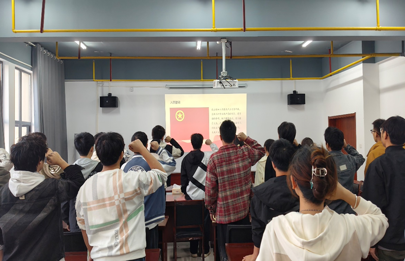 随后,全体人员起立,奏唱中华人民共和国国歌。激昂的旋律回荡在会场,进一步激发了学员们的爱国情怀与责任担当。在庄重的氛围中,全体青马班学员高举右拳,庄严进行入团誓词宣誓,铮铮誓言不仅是对初心的坚守,更是对成为中国特色社会主义事业合格建设者和可靠接班人的坚定承诺。