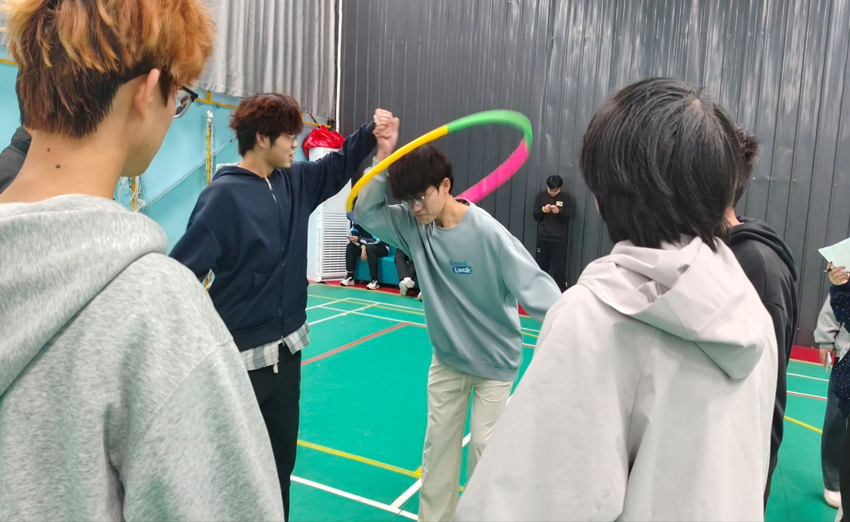 “一圈到底”游戏则更是将现场气氛推向高潮。所有队员手拉手围成圆圈,在不松开手的情况下,让呼啦圈穿过每个人的身体,依次传递。为了更快完成,队员们各显神通,弯腰、抬腿、侧身……动作千奇百怪,现场笑声不断。小小的呼啦圈在人群中灵活穿梭,仿佛也穿过了彼此间无形的心理距离,将大家的心紧紧联系在了一起。除了这些主打项目,现场还设置了其他多项富有趣味和挑战的互动游戏,整个运动场充满了欢声笑语。