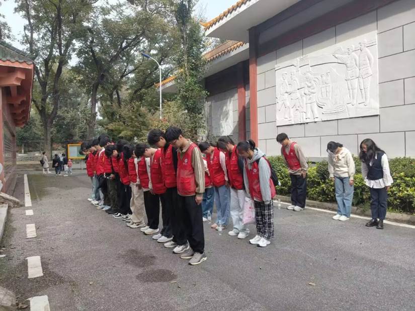 为深化思想政治理论课的实践内涵,推动理论学习向信念塑造与行动自觉转化,11月1日,bbin连环夺宝官网组织四十余名学生赴赤壁市开展了一堂以“缅怀革命先烈,传承红色基因”为主题的沉浸式思政实践课。本次活动将课堂延伸至红色历史现场,引导同学在“行走”中学习,在思考中感悟,在实践中筑牢理想信念之基。