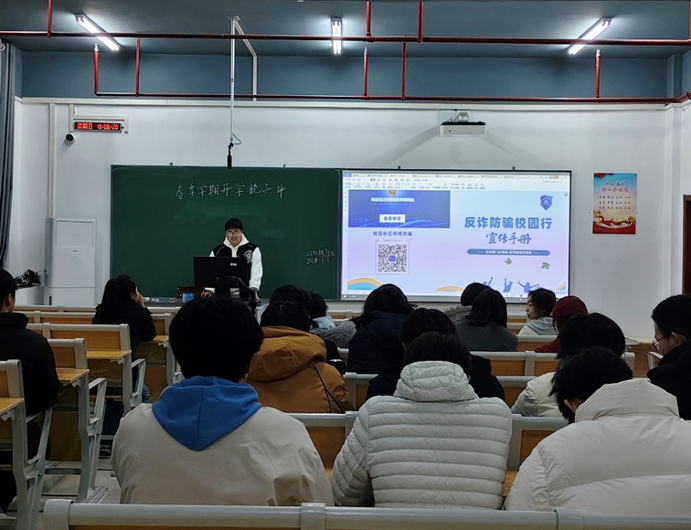 班会中,各班级以多样化形式开展反诈教育。班主任带领学生集中观看反诈宣传片,直观揭露刷单返利、游戏装备诈骗、冒充老师收费等常见诈骗套路,结合近期高校诈骗案例,让学生深刻认识到电信网络诈骗的隐蔽性与危害性。同时,组织学生认真学习反诈手册,细致讲解“不轻信、不透露、不转账”的防骗原则,进一步引导学生掌握识别和防范各类诈骗陷阱的技巧。为构建家校协同反诈防线,各班主任在班级家长群转发《致全校学生及家长的一封信》,向家长普及反诈知识,引导家长履行监护责任,与学校携手做好学生反诈教育。同时,积极引导学生及家长关注国家及省级反诈平台账号,学习最新反诈资讯,共同提升全民反诈意识。